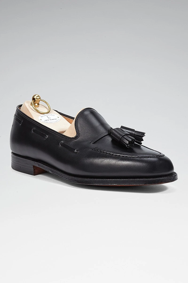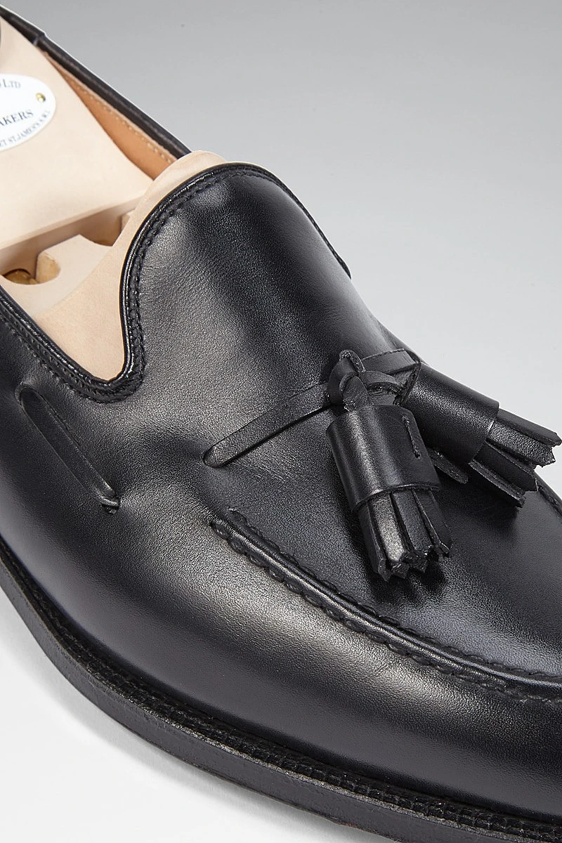 Inspired by the Moccasin, the Black Calf Tassel Loafer has become synonymous with sartorial English elegance for over a century. A Goodyear welt construction increases the durability and longevity of the shoe whilst the tassels and slender shape of the loafer provide traditional sophistication for both work or weekend. Hand-crafted in Northamptonshire, England.