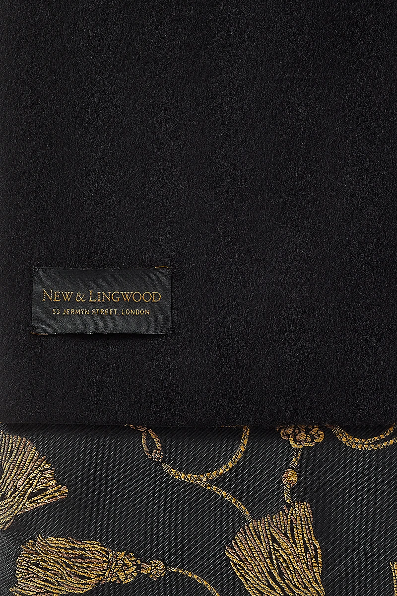 This double-faced scarf features a tassel-motif and is woven in England exclusively for New & Lingwood with a backing of the softest 100% cashmere.