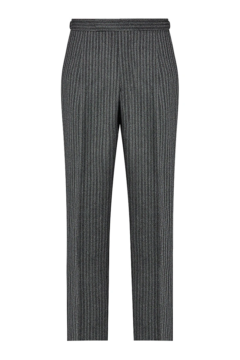 Our Morning trousers in a grey, black and white stripe is the perfect partner for our black Morning coat.