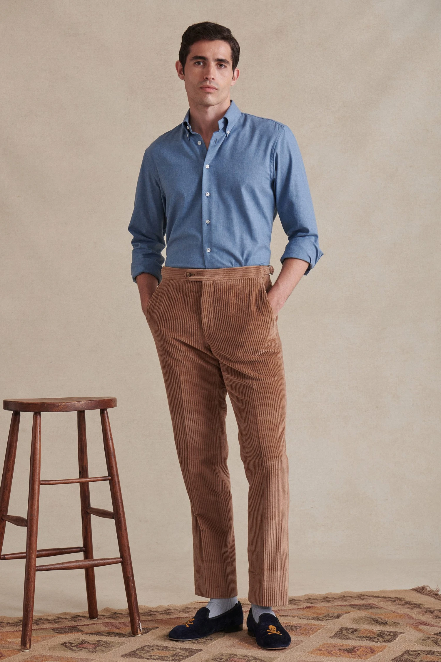 A 100% cotton shirt featuring a Donegal flecked weave. Finished with a button down collar, French placket, and adjustable button cuffs.