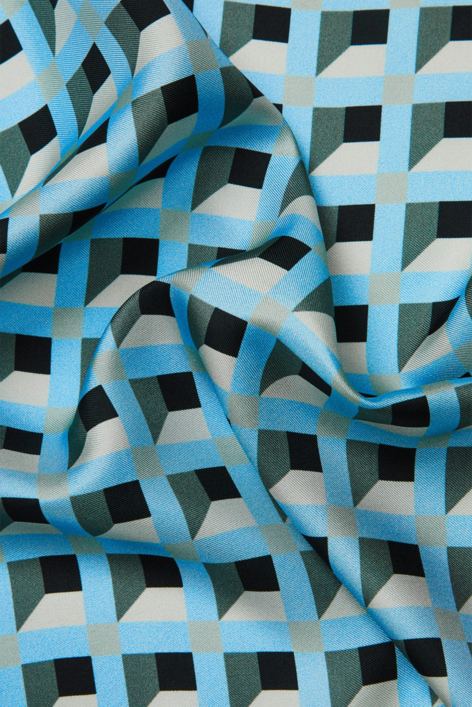 Made in Italy this 100% silk pocket square is printed with a window like vector design and finished with hand rolled edges.