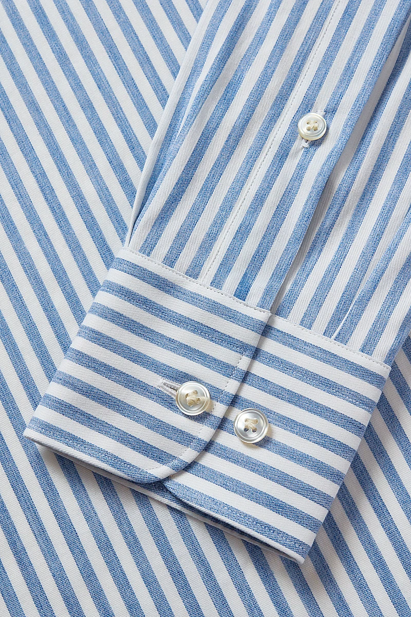 Softly coloured stripes on a soft cotton and wool blend twill make this a casually comfortable shirt for cool weather.