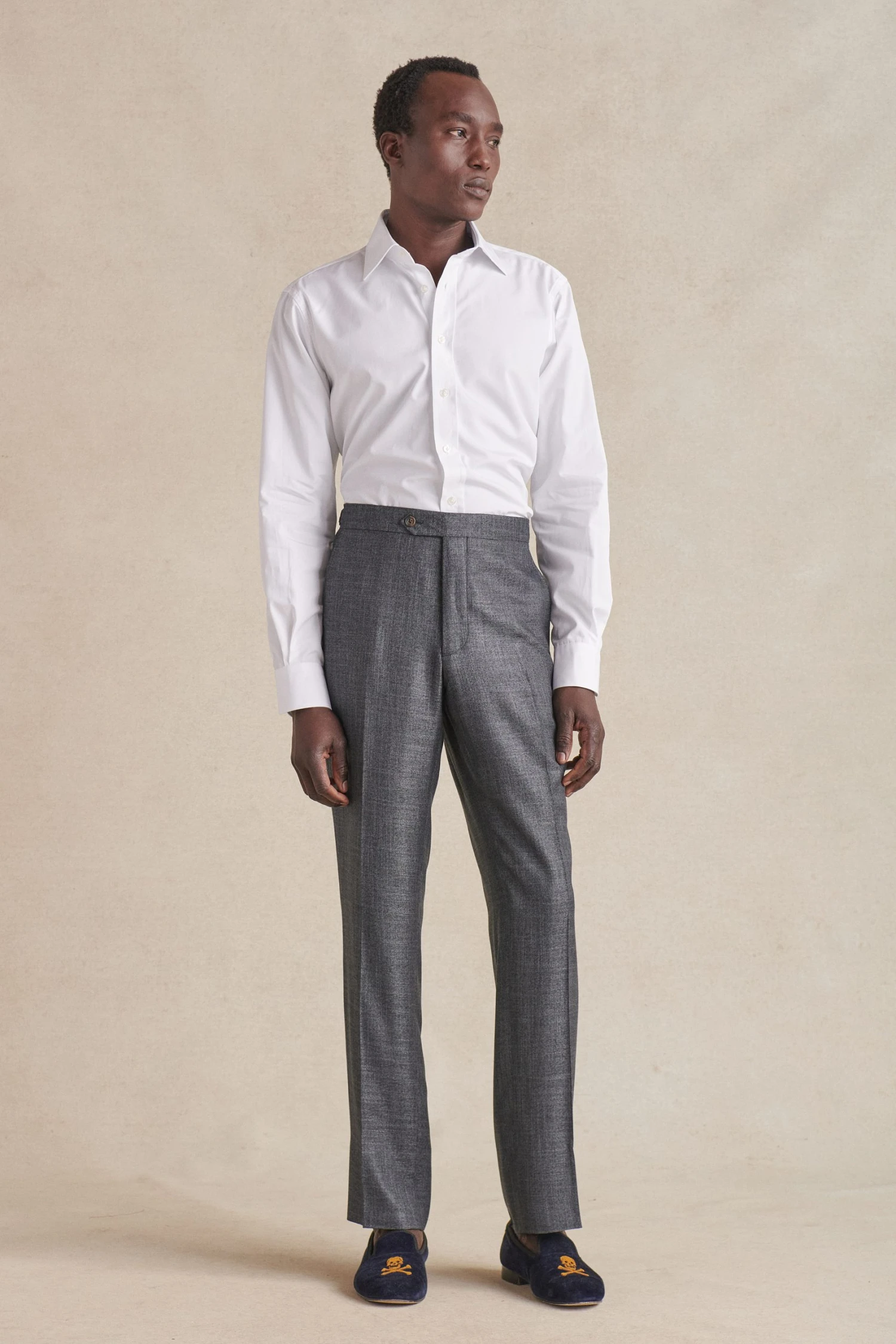 OurCharcoal Flat Front Bamboo Trousers are tacked at 35 inches so you can have them finished to your ideal length using our complimentary alterations service.