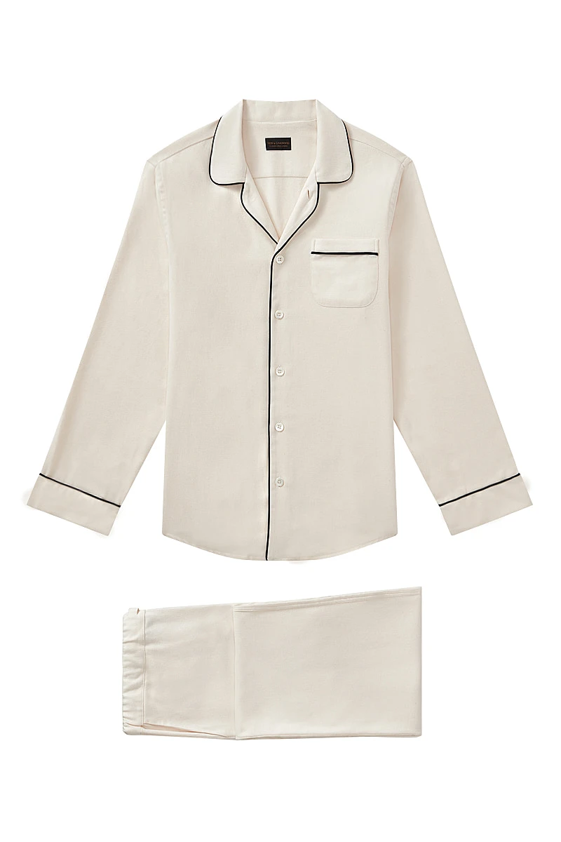 Softly brushed 100% cotton flannel makes these pyjamas a warm choice for winter. Featuring a trim cut for a modern silhouette.