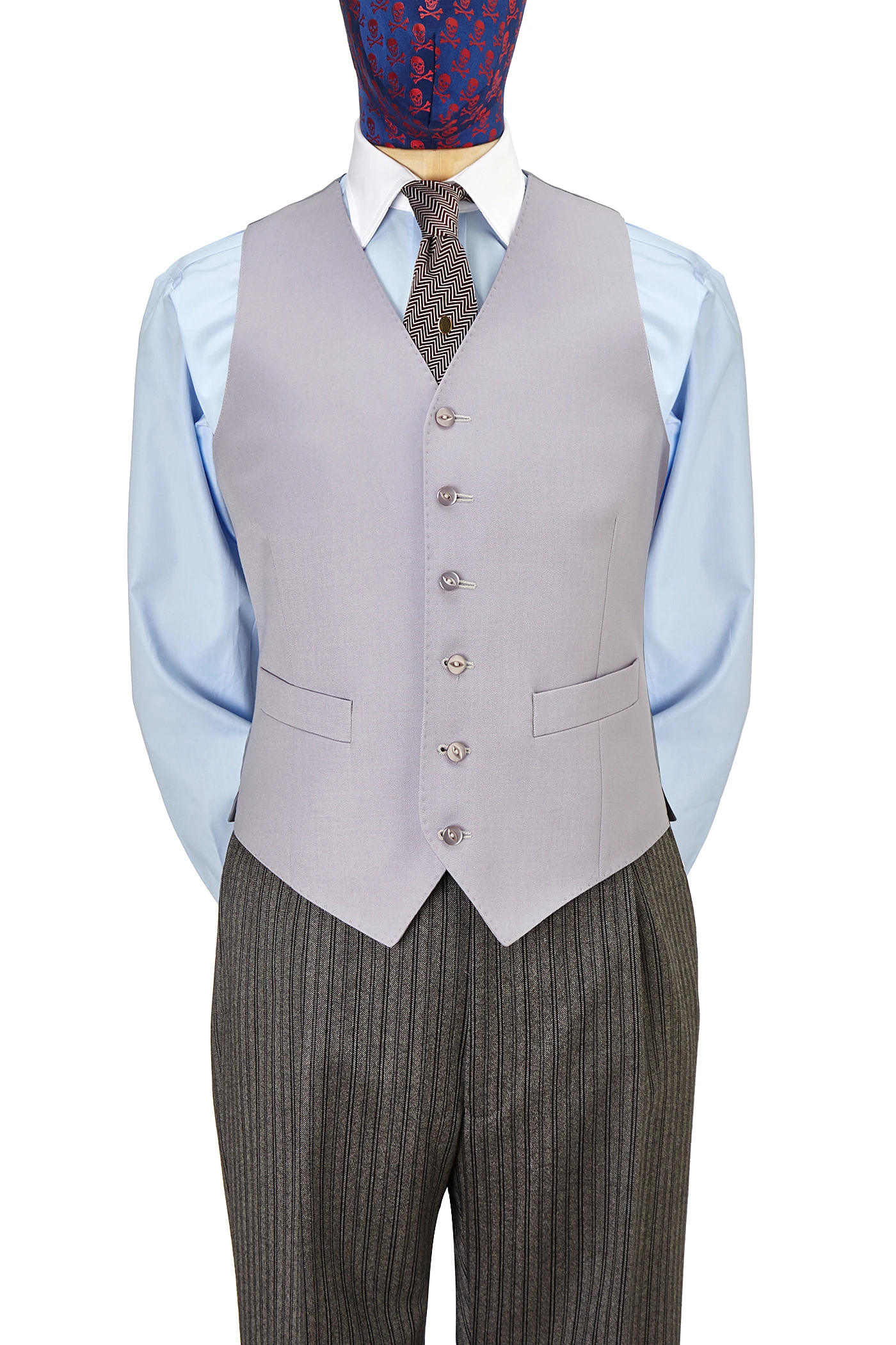 Our single-breasted Morning waistcoat is cut from a smooth blend of wool and linen, which resists creasing. Cut with peak lapels and a satin back lining with a back adjuster and finished with six mother-of-pearl buttons and two fob pockets.