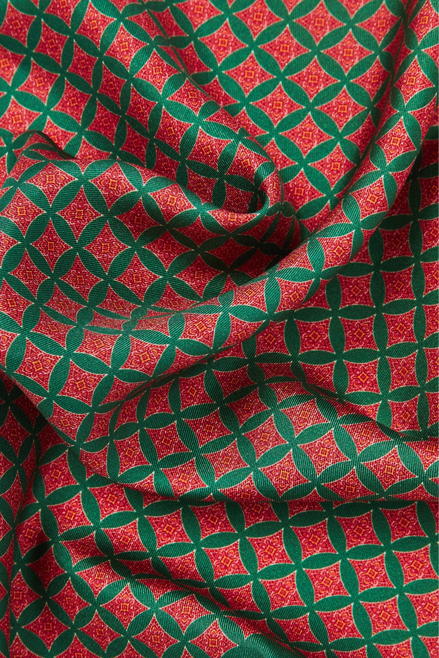 Made in Italy, this lightweight pocket square features an intricate geometric pattern printed on to 100% silk.