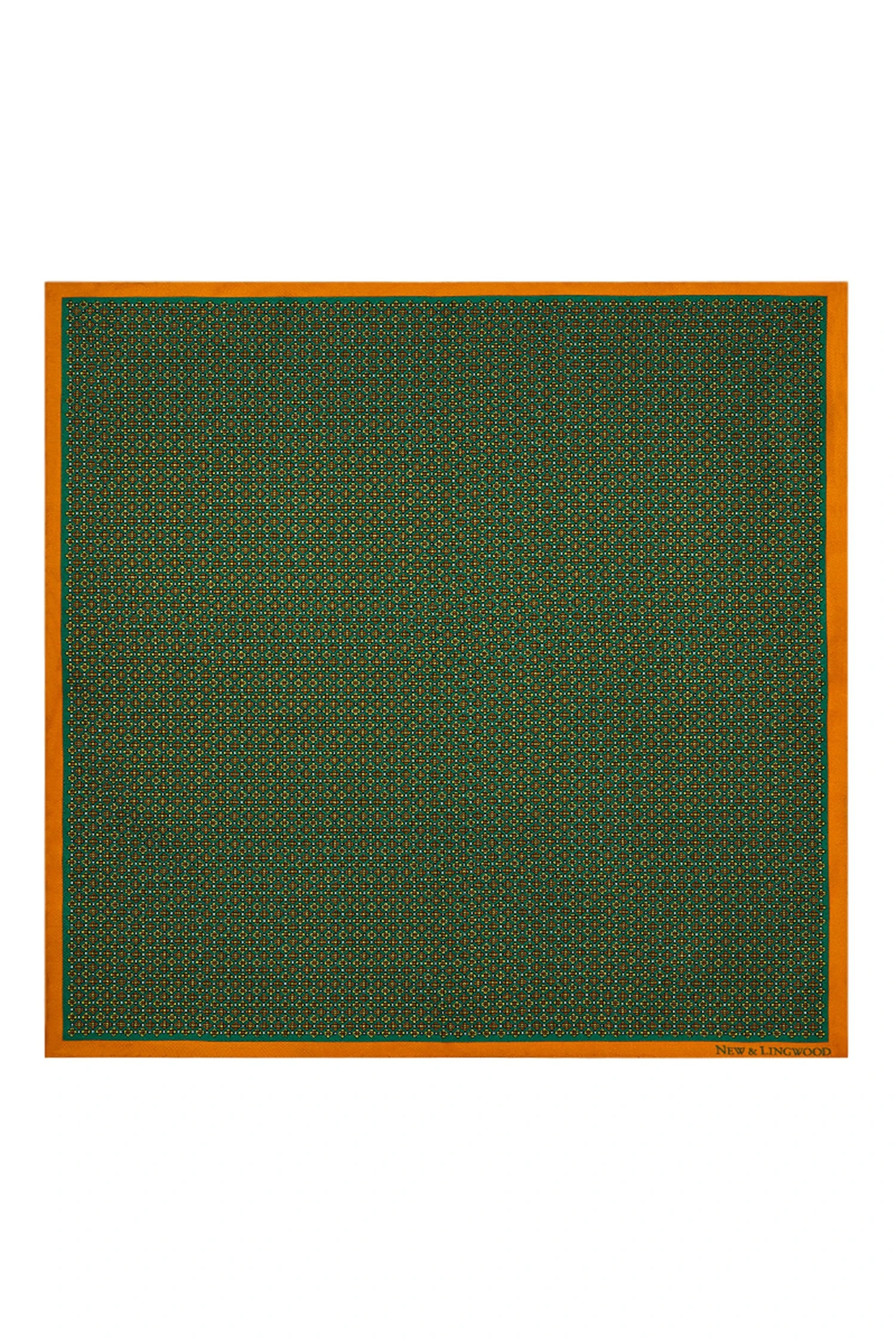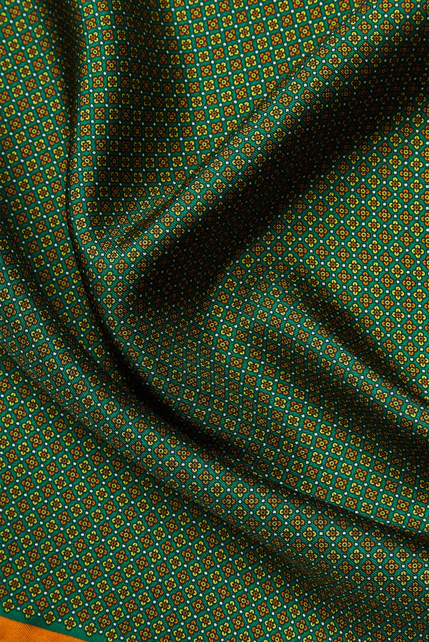 Made in italy this 100% silk pocket square features a classic foulard block repeat pattern and is finished with hand rolled edges.