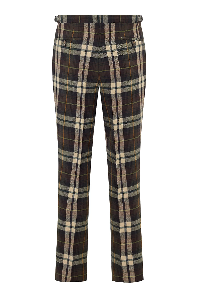 Available in a variety of colour options our wool tartan trousers add an elegant flourish to traditional evening dress. Featuring single reverse pleats and side adjustment tabs for a sleek silhouette.