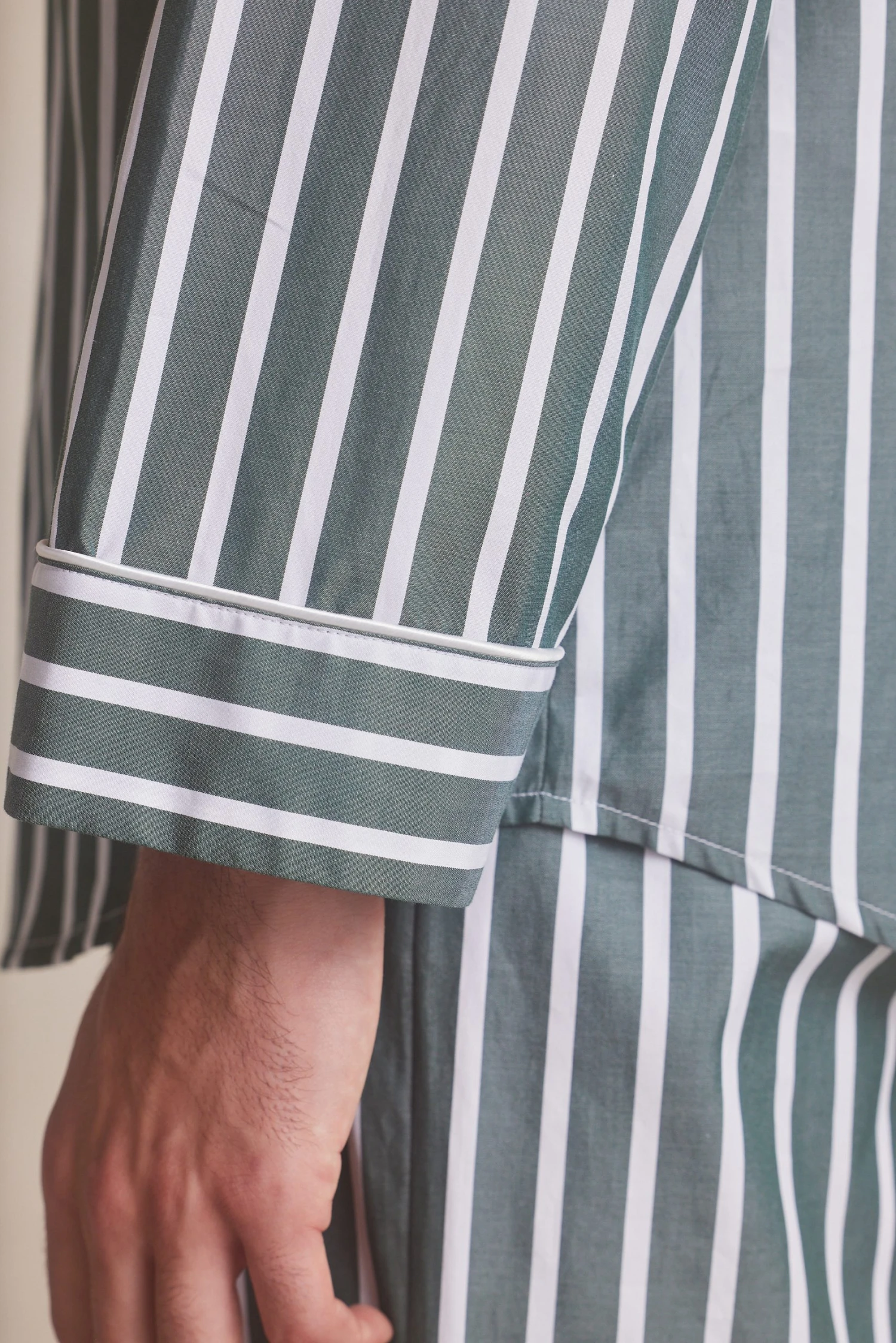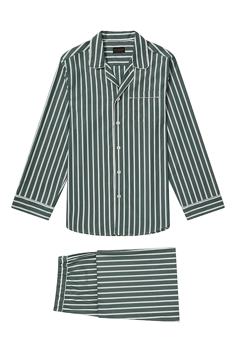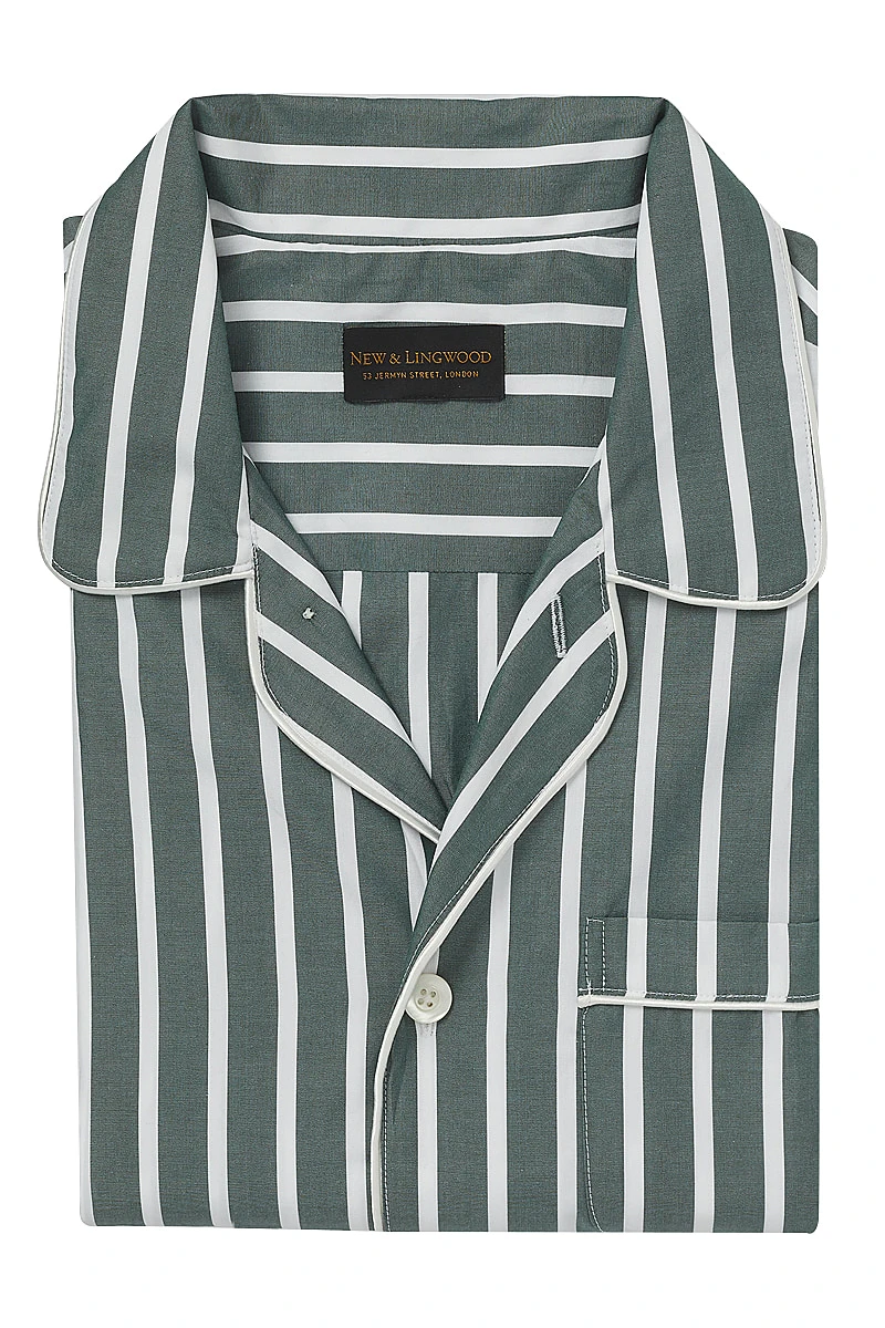 Green Wide Stripe Cotton Pyjama Set