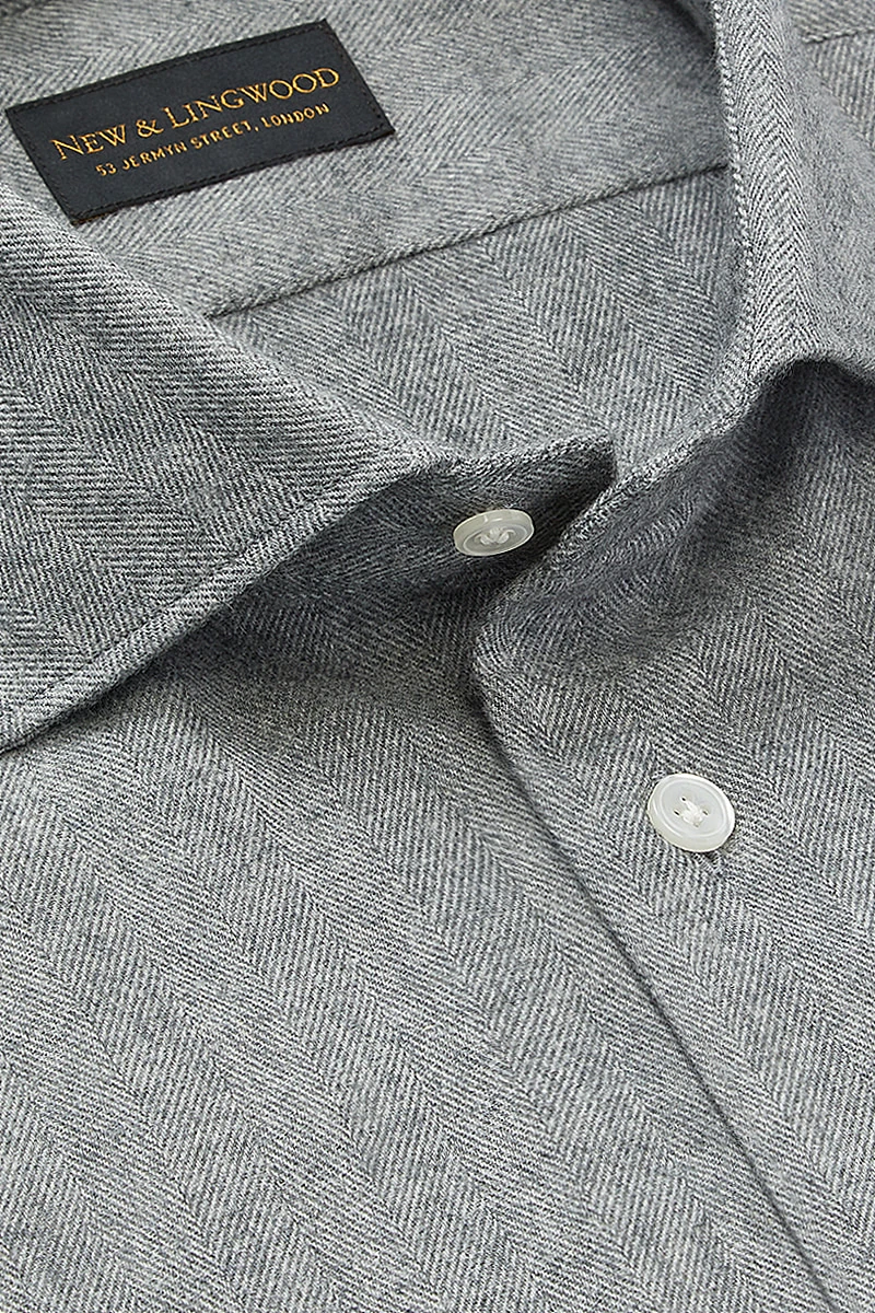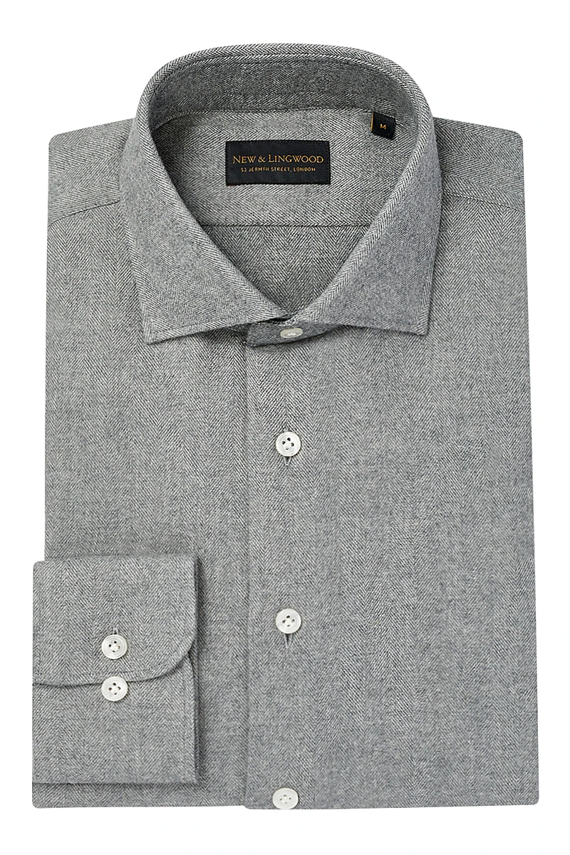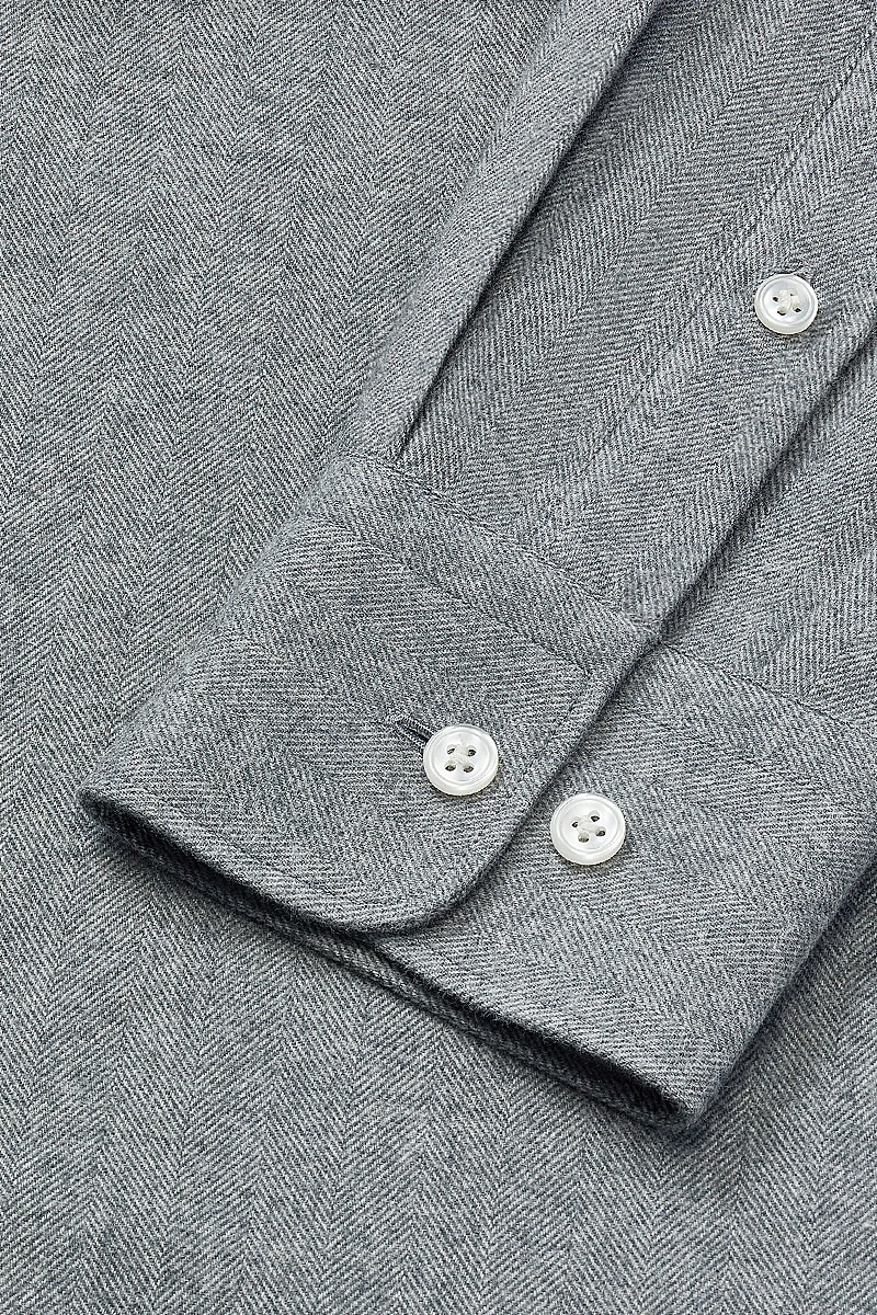A 100% brushed cotton flannel shirt. Features a neckband collar, French placket, and adjustable button cuffs.