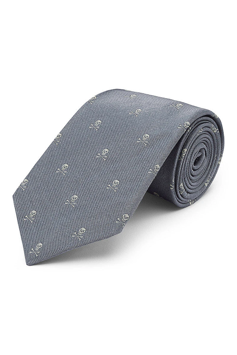 Grey & Gold Skull & Crossbones Tie