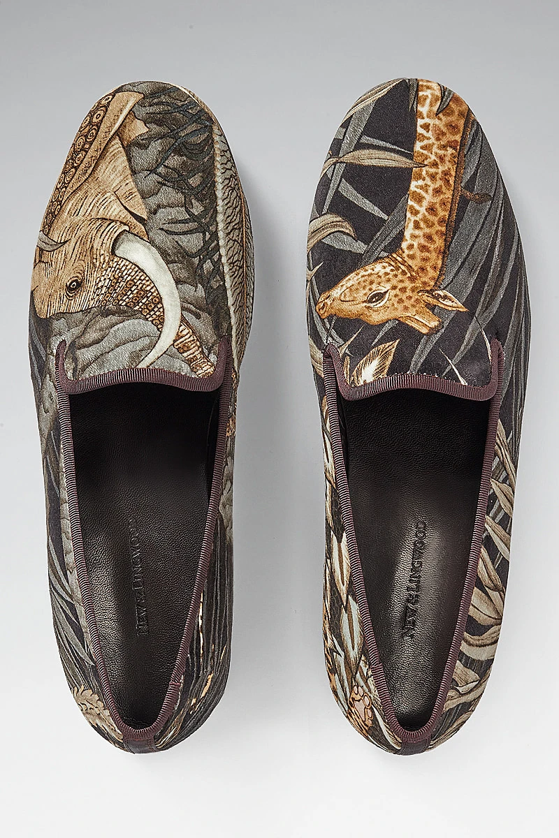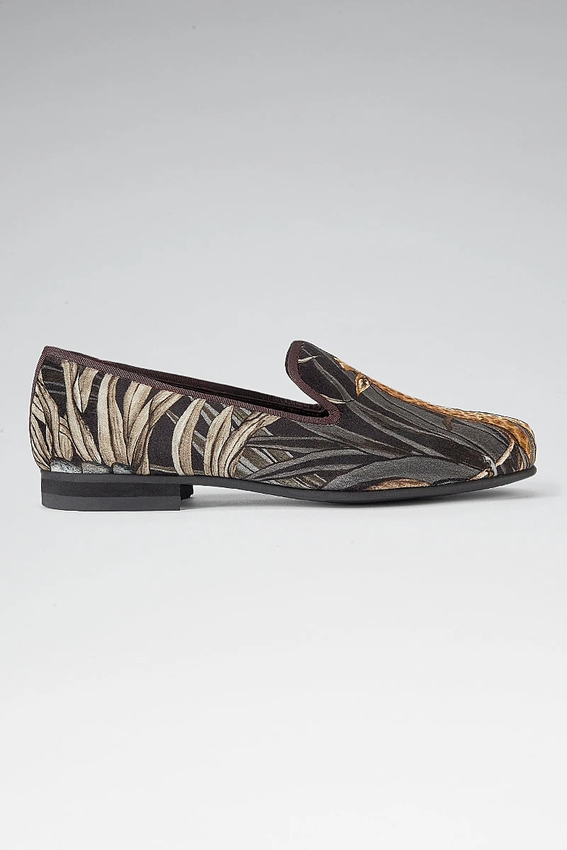 We have developed our Albert slippers to feature a soft slimline rubber sole to make a shoe that is fit for all purposes whilst maintaining their traditional elegance. Boasting our grey sabie forest design on the outer these slippers are fully lined with quilted black silk for additional comfort. Pair with matching dressing gown.