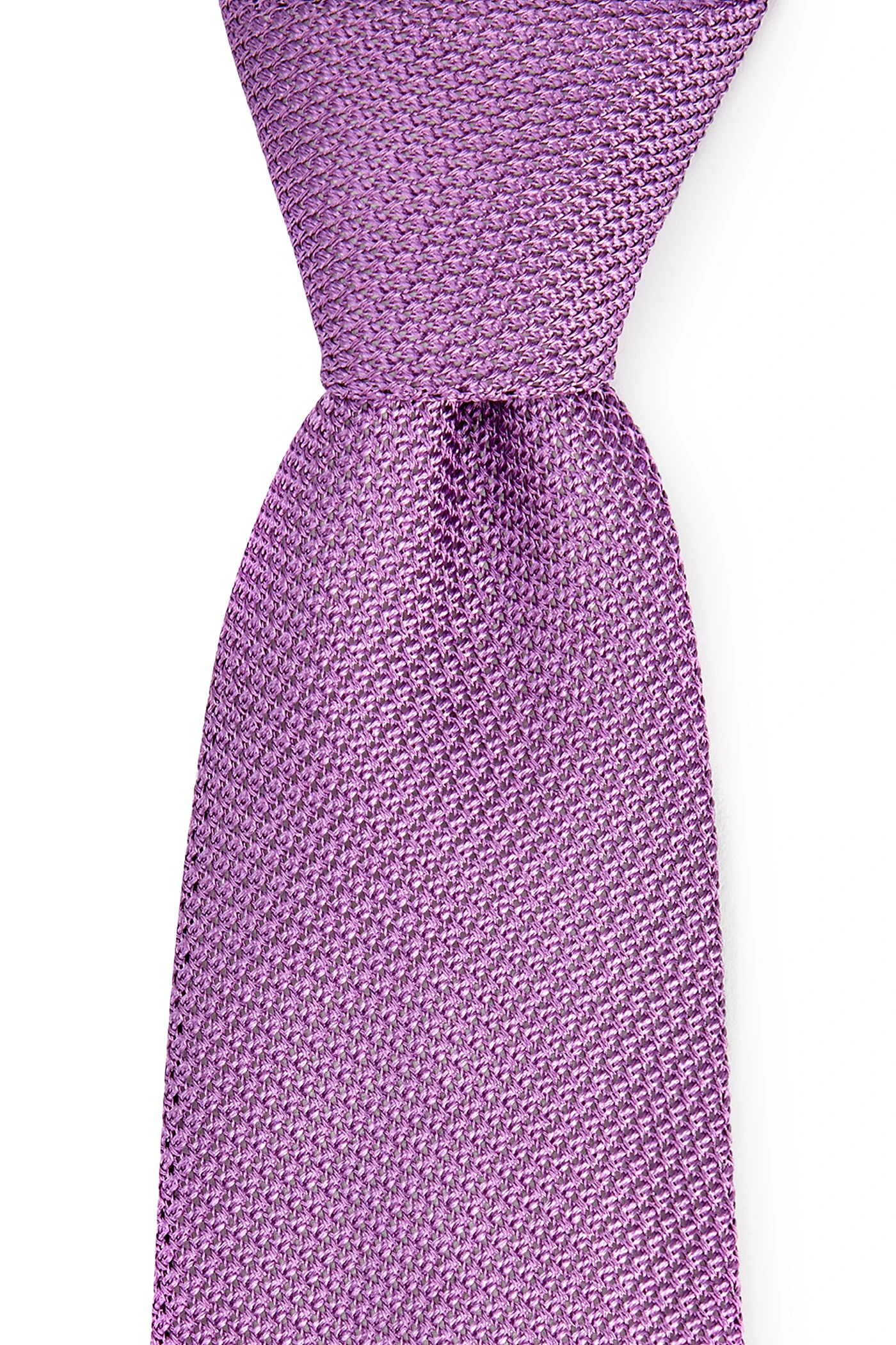 Made in Italy, the Lilac Grenadine Small Weave Tie has a fully-fitted, wool rich interlining to ensure a beautiful drape and a perfect knot. As a further mark of quality, our ties are exquisitely self-lined – a hallmark of superior necktie construction. The ties are made using an authentic slip stitch construction with hand-sewn bar tacks and feature a self-loop ‘keeper’ which ensures that the tie adjusts to each wearer’s neck – a true sign of craft and distinction, it also prevents the ‘cracking’ which can be heard in poorer quality ties when knotting. Width 8.5cm