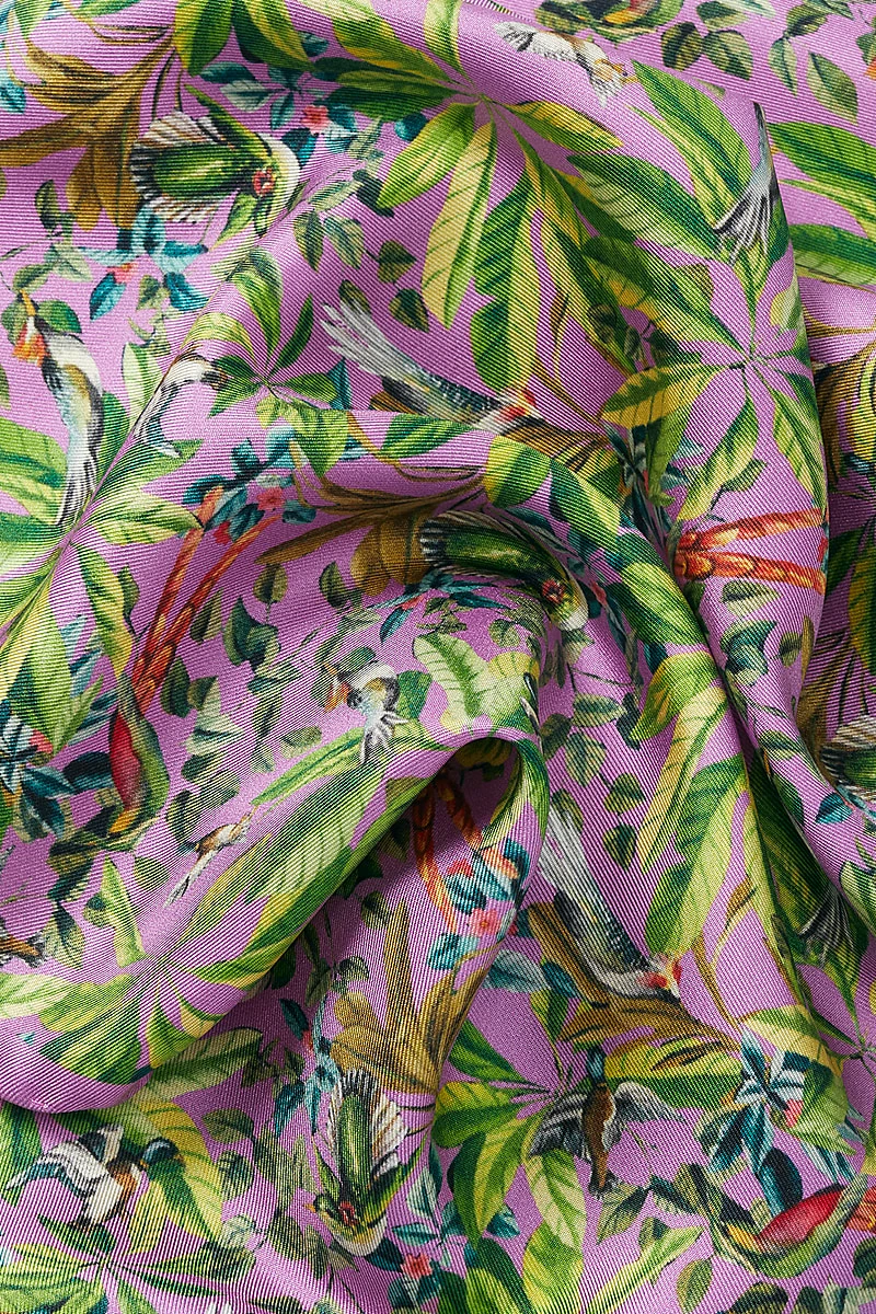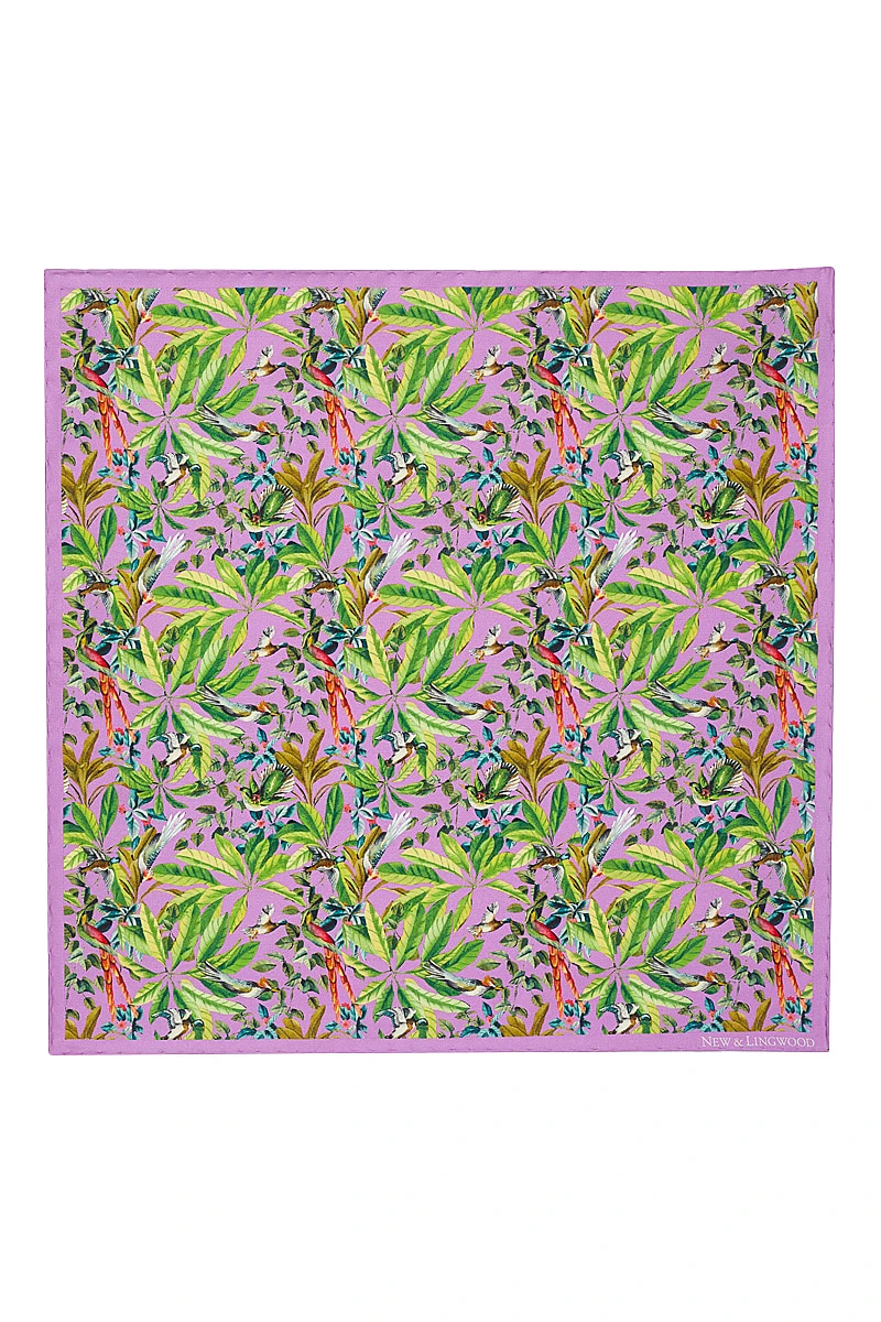 Magenta Bird Garden Silk Pocket Square