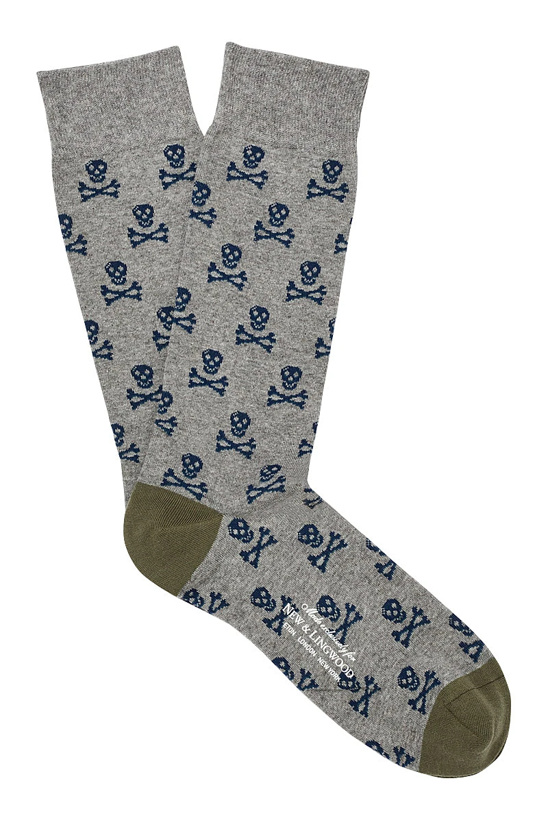Mid Grey & Navy Skull & Crossbones Mid Calf Cotton Socks