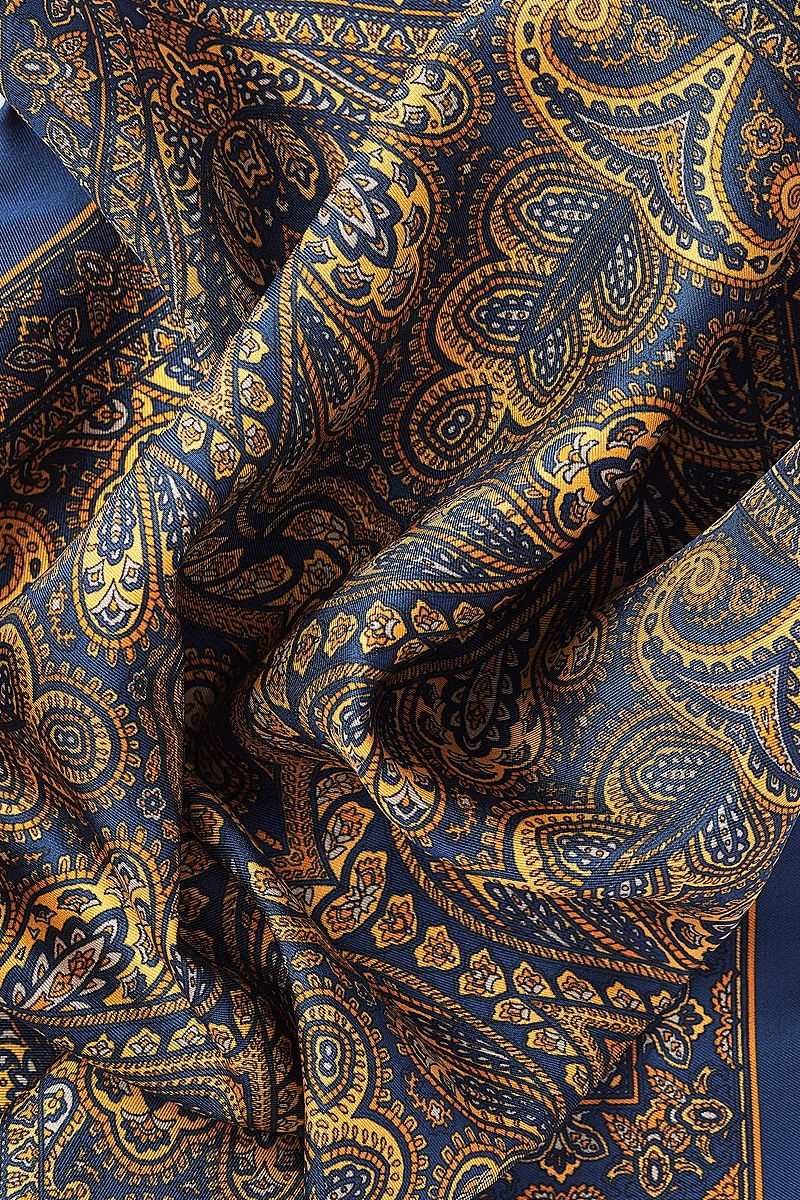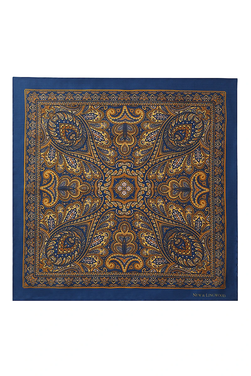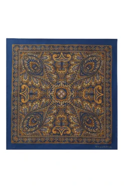 A classic silk twill pocket square featuring a detailed paisley design. Hand finished in England.