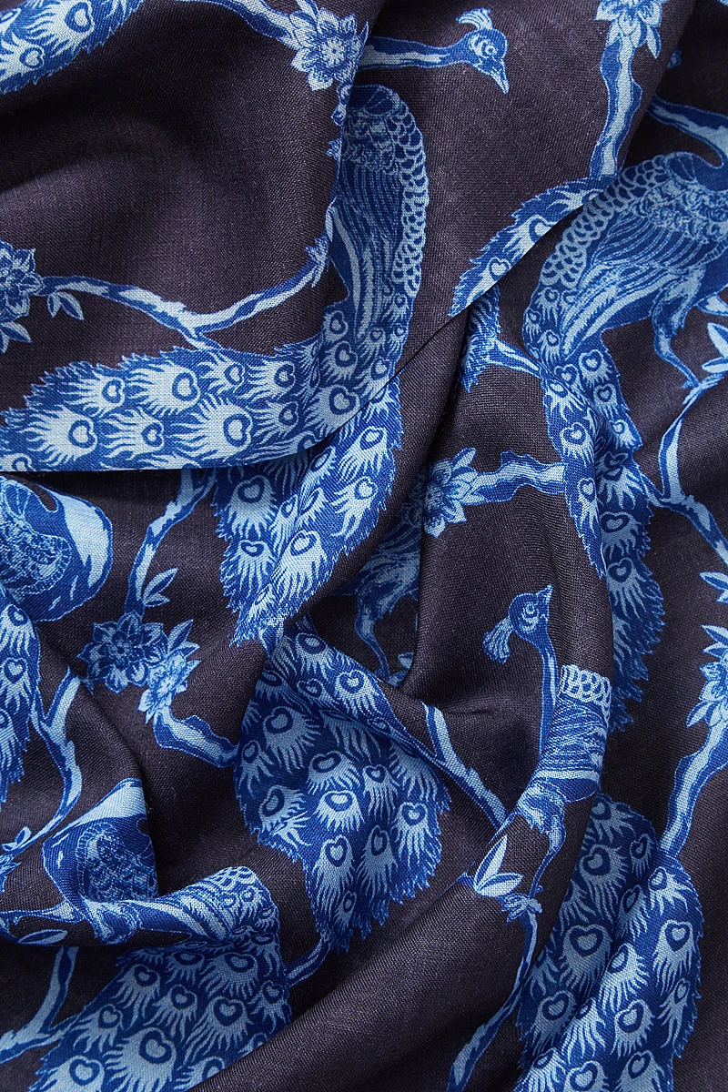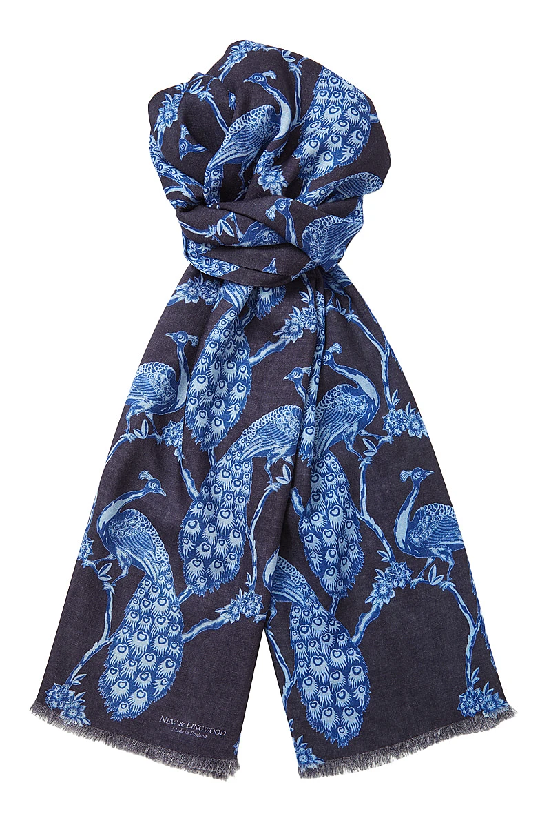 Featuring our iconic Peacock motif in a beautiful wool & silk blend, our Peacock scarf is made in England, in a tubular construction.