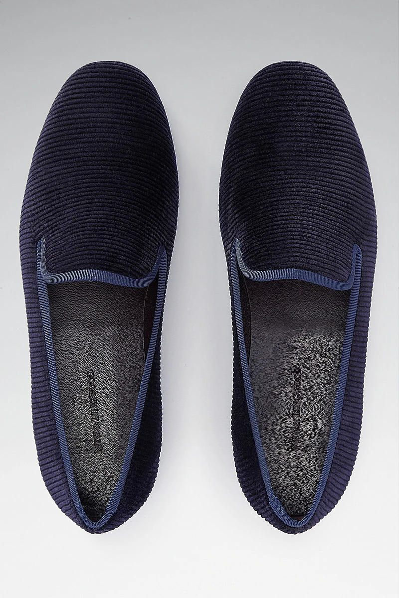 Our classic Albert Slipper is re-imagined with a plush corduroy outer. Made in the UK, these slippers feature a leather interior and a stacked leather heel and finished with a rubber sole making them suitable for both indoors and outdoors.