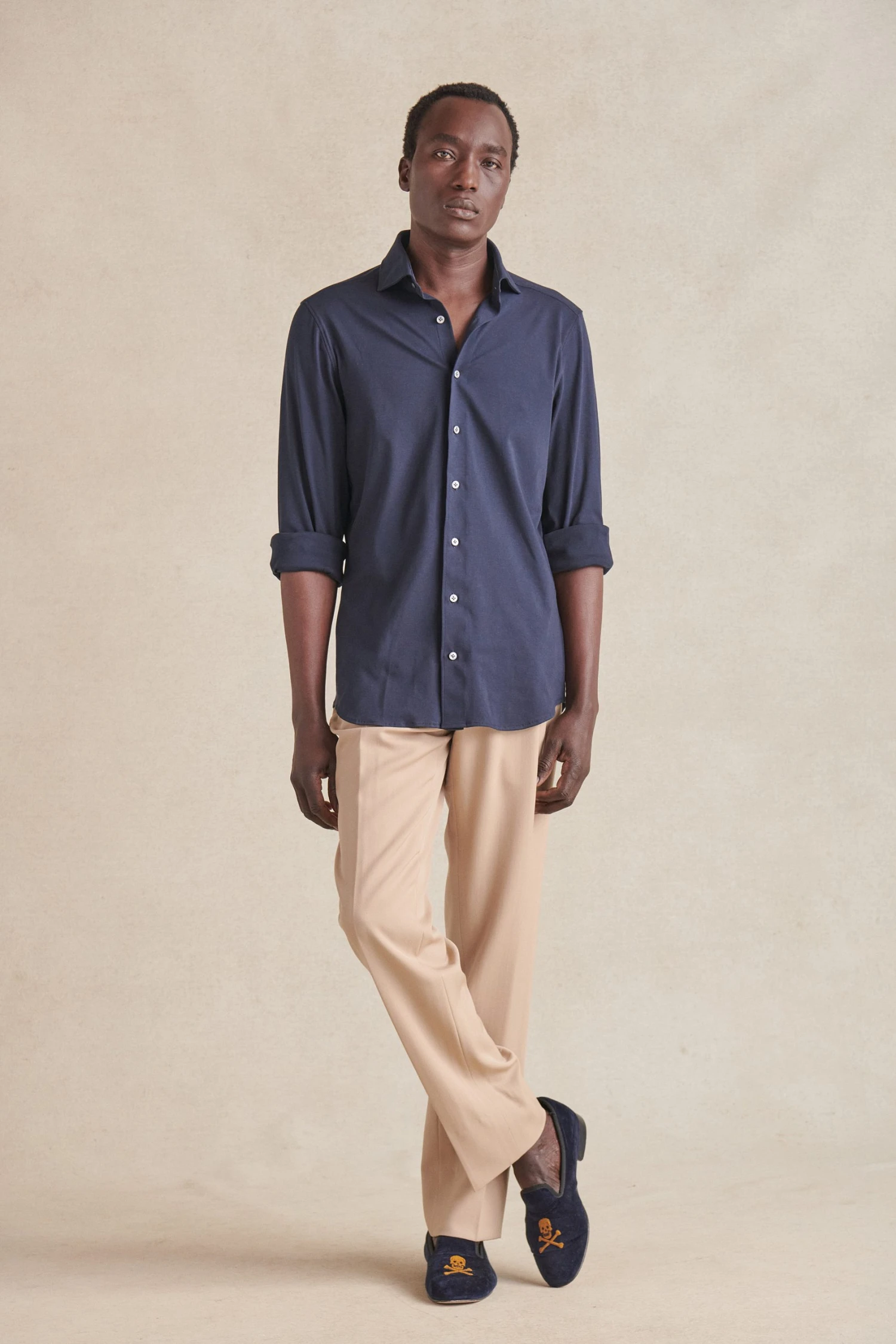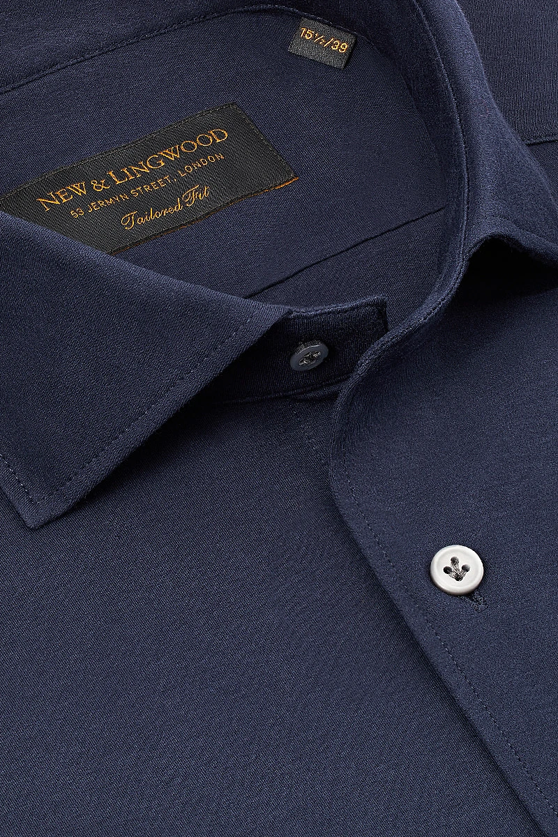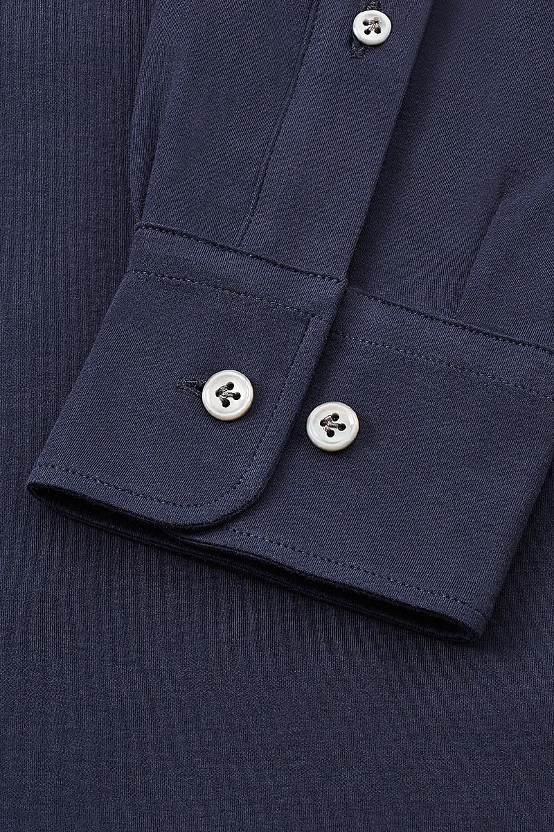 This will change the way you think about formal shirts. Cut in a slim modern fit from a soft, finely knit cotton blend jersey with four-way stretch, it fits closely yet comfortably without pulling or binding. Maintenance couldn’t be easier — wash at 30 degrees with no ironing required.