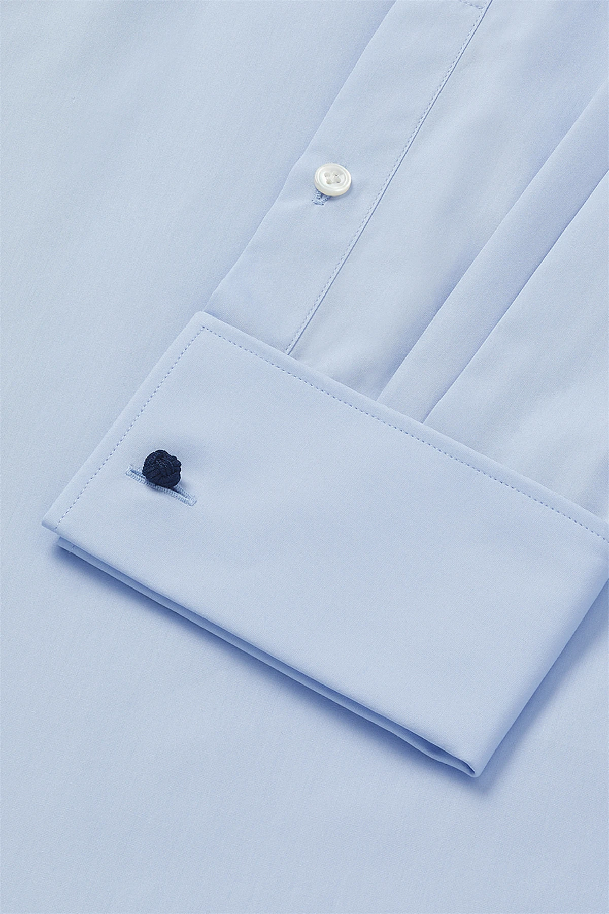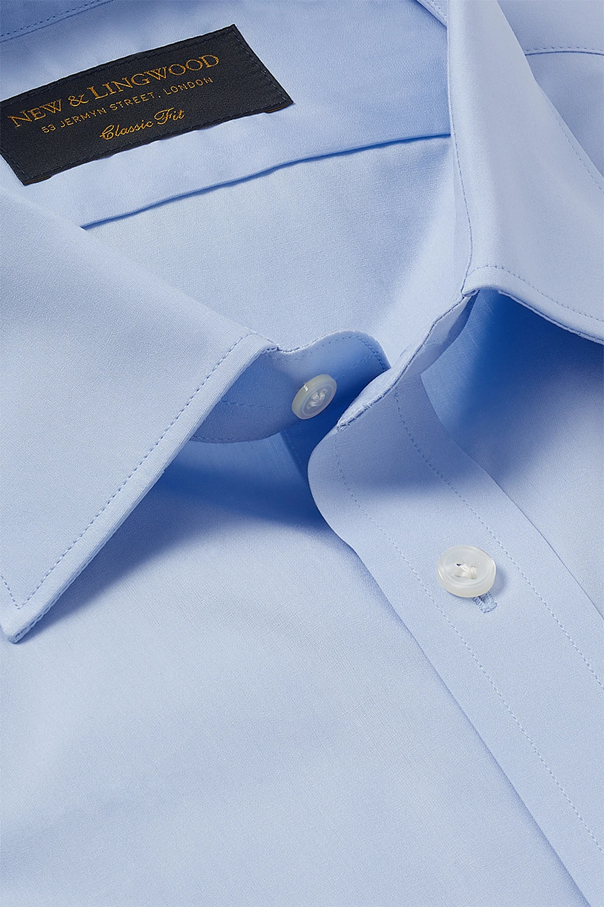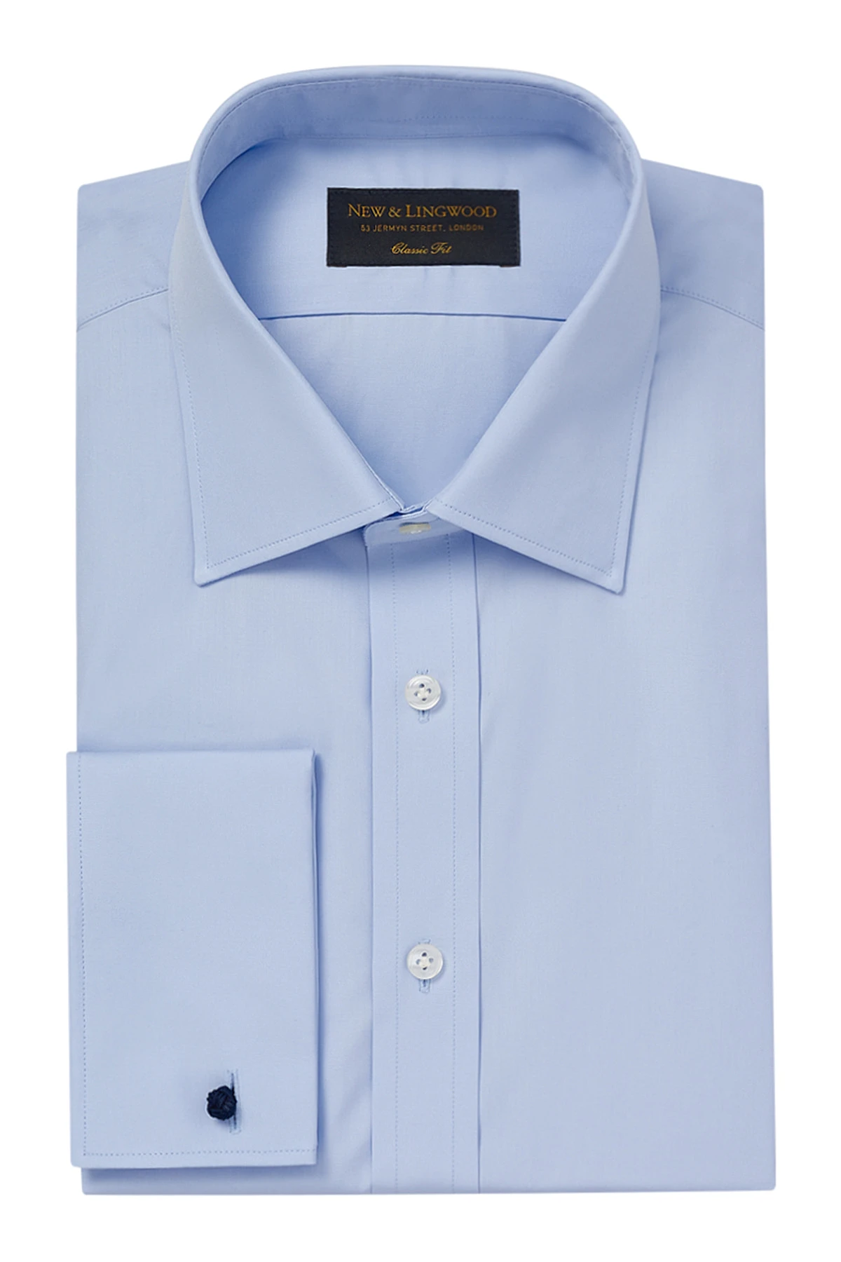A Jermyn Street staple, this crisp two-fold 100% cotton poplin dress shirt is traditionally cut for an easy fit, with a classic spread collar and double cuffs for a more formal look. Featuring single-need stitching for elegance and comfort, a split-yoke back, full-length tail, and reinforced side gussets.