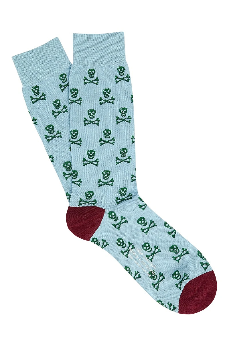 Our signature skull and crossbones motif pops from these colourful mid-calf cotton socks, finished with a contrasting heel, top and toe for a discreet flash of style and elegance.
