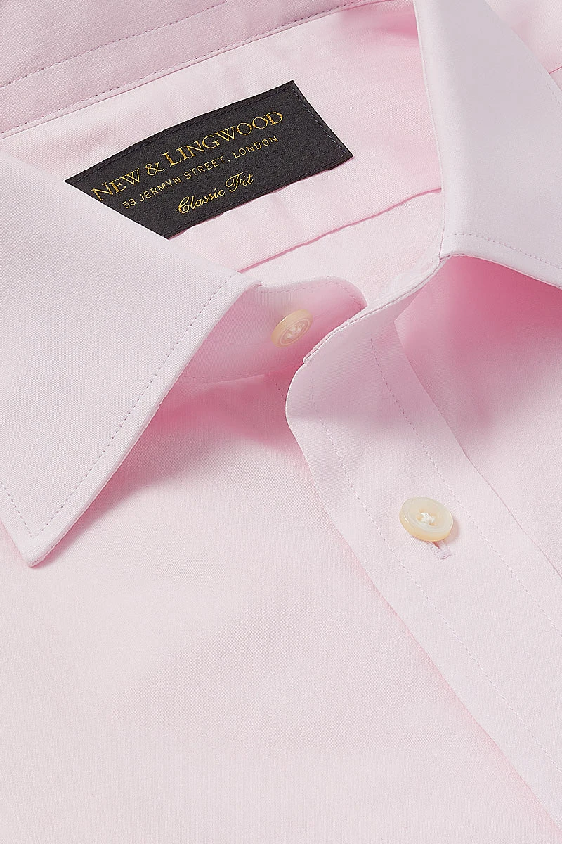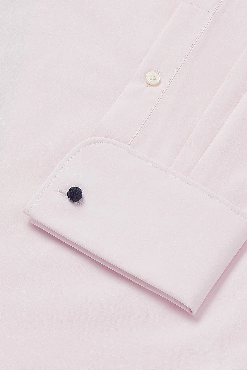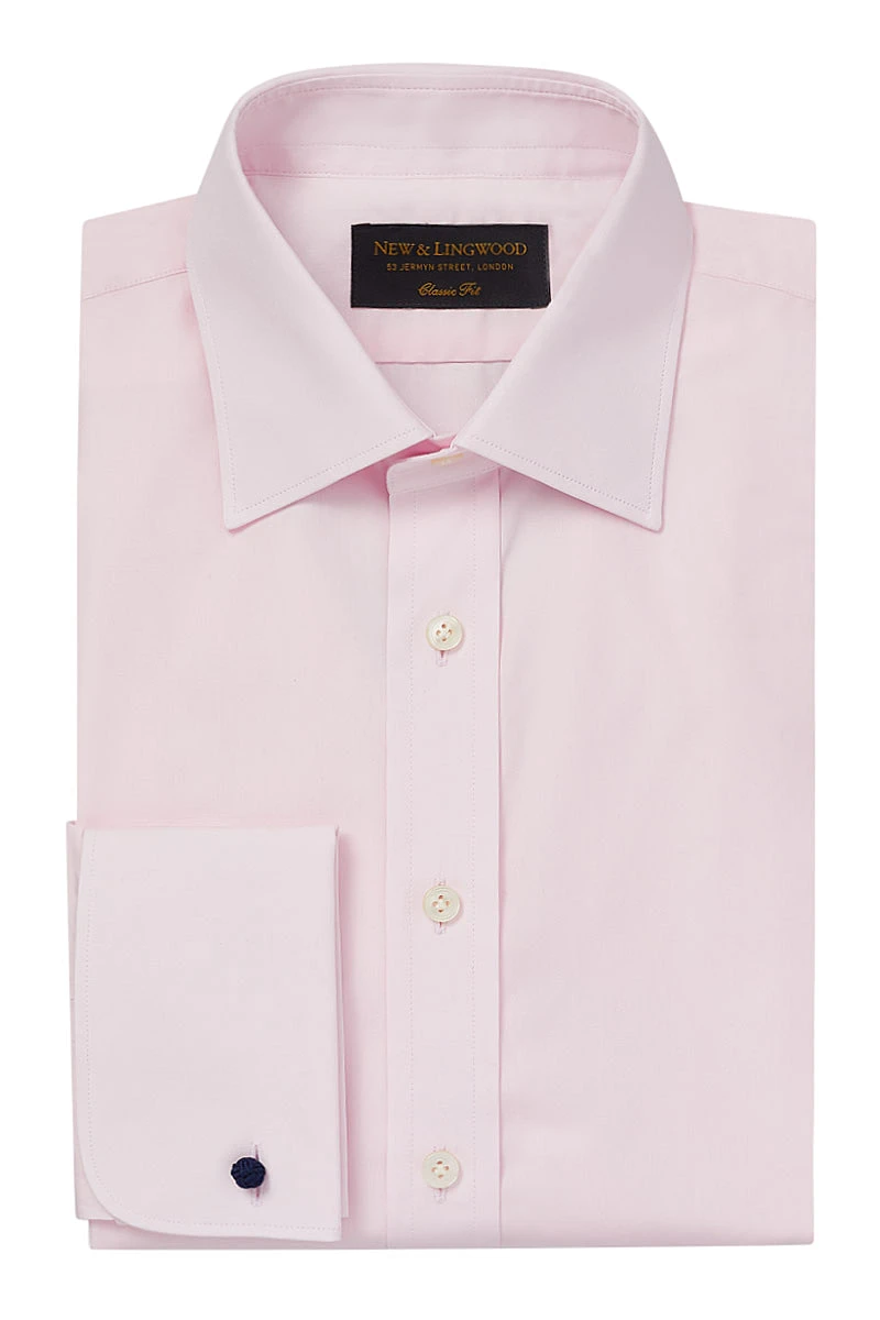 A Jermyn Street staple, this crisp two-fold 100% cotton poplin dress shirt is traditionally cut for an easy fit, with a classic spread collar and double cuffs for a more formal look. Featuring single-need stitching for elegance and comfort, a split-yoke back, full-length tail, and reinforced side gussets.