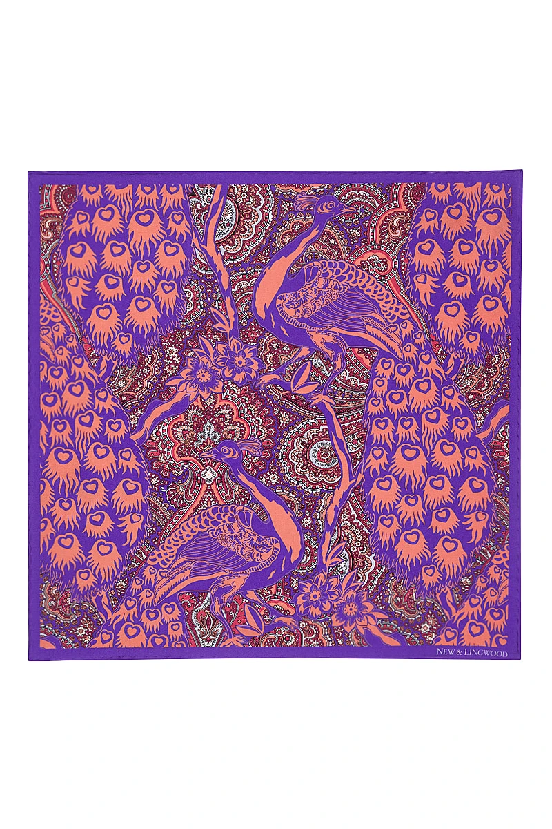 Our iconic peacock rests in a bed of intricate paisley on this Italian-made printed silk pocket square.