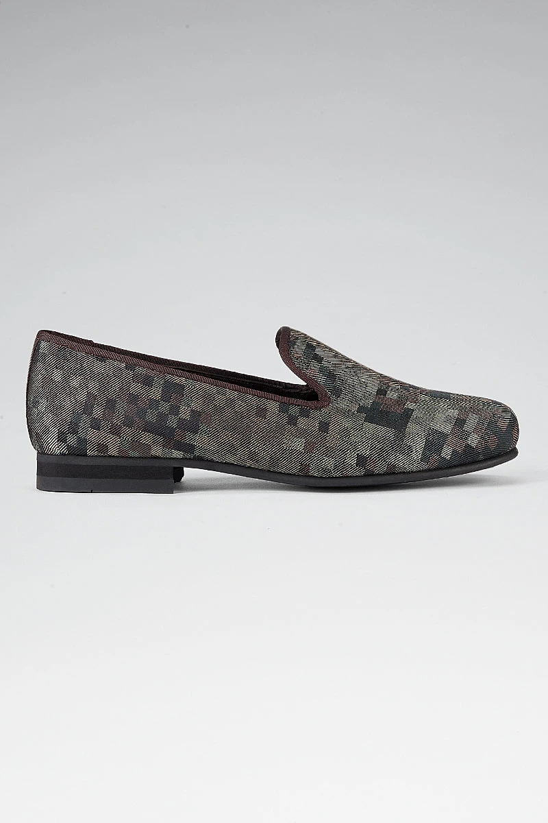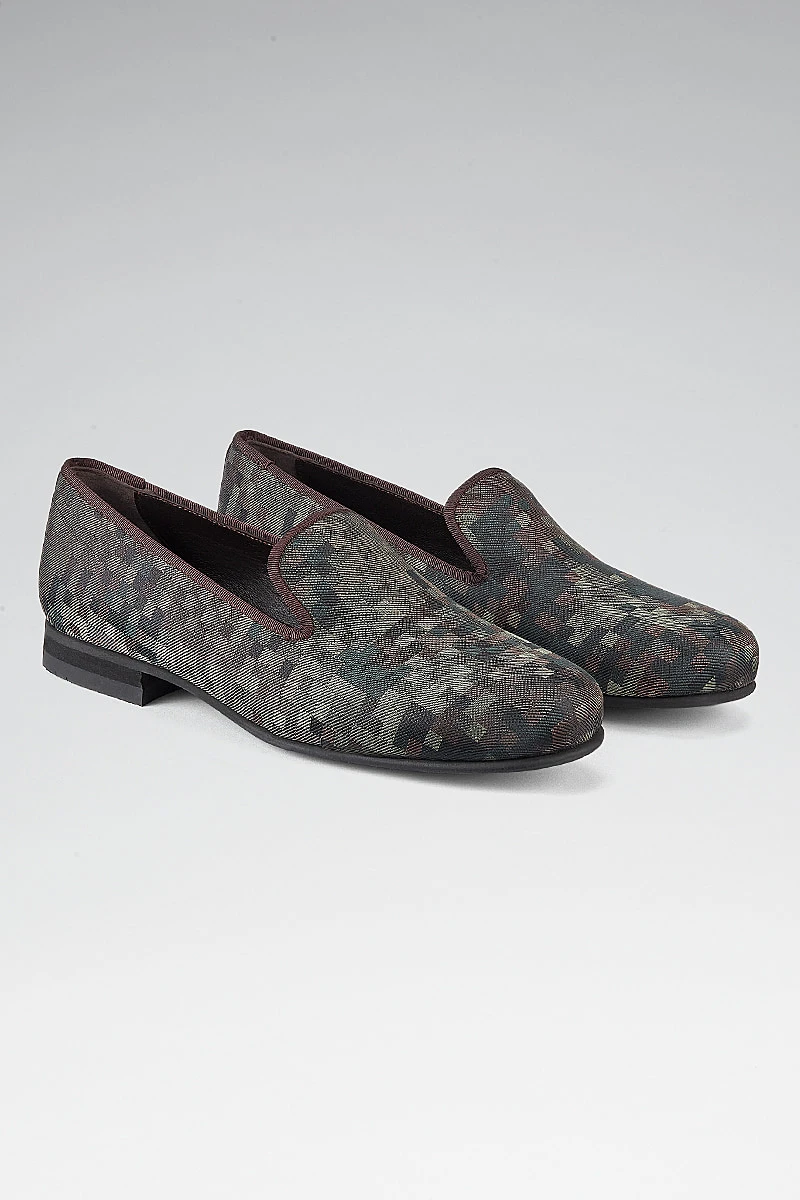 We have developed our Albert slippers to feature a soft slimline rubber sole to make a shoe that is fit for all purposes whilst maintaining their traditional elegance. Boasting our pixelated camo design on the outer these slippers are fully lined with quilted black silk for additional comfort. Pair with matching dressing gown.