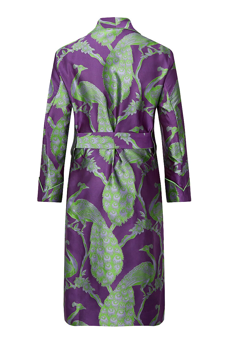 The Peacock design was exclusively developed by New & Lingwood from an archive of vintage prints. The sumptuous details of the design are perfectly captured in the rich silk colours. Handmade in 100% English woven silk satin, this gown makes a striking and stylish statement in masculine loungewear. It features patch pockets, an outbreast welt and deep gauntlet cuffs.