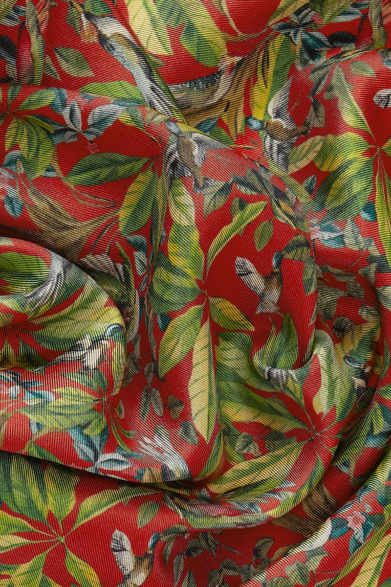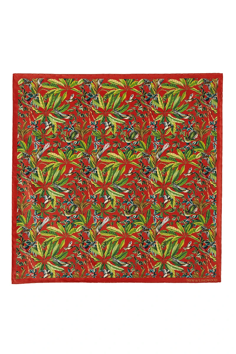 Red Bird Garden Silk Pocket Square