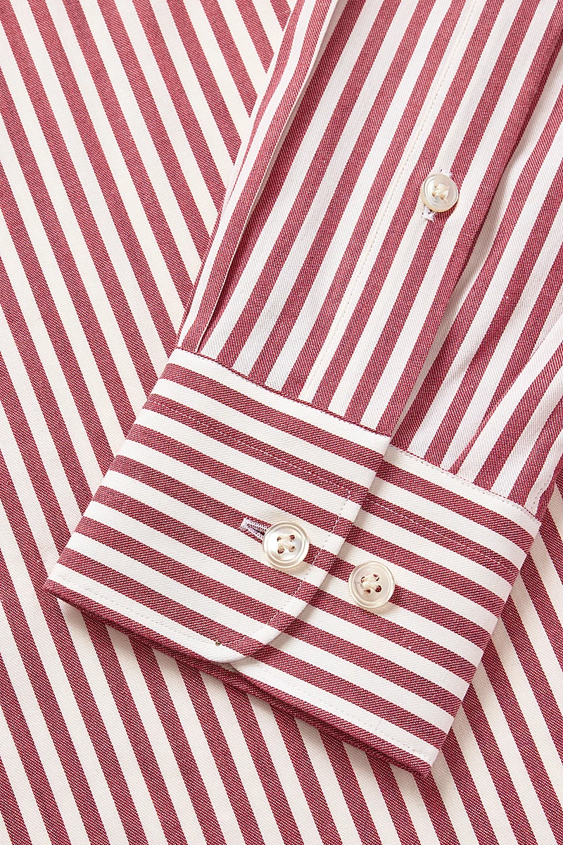 Softly coloured stripes on a soft cotton and wool blend twill make this a casually comfortable shirt for cool weather.