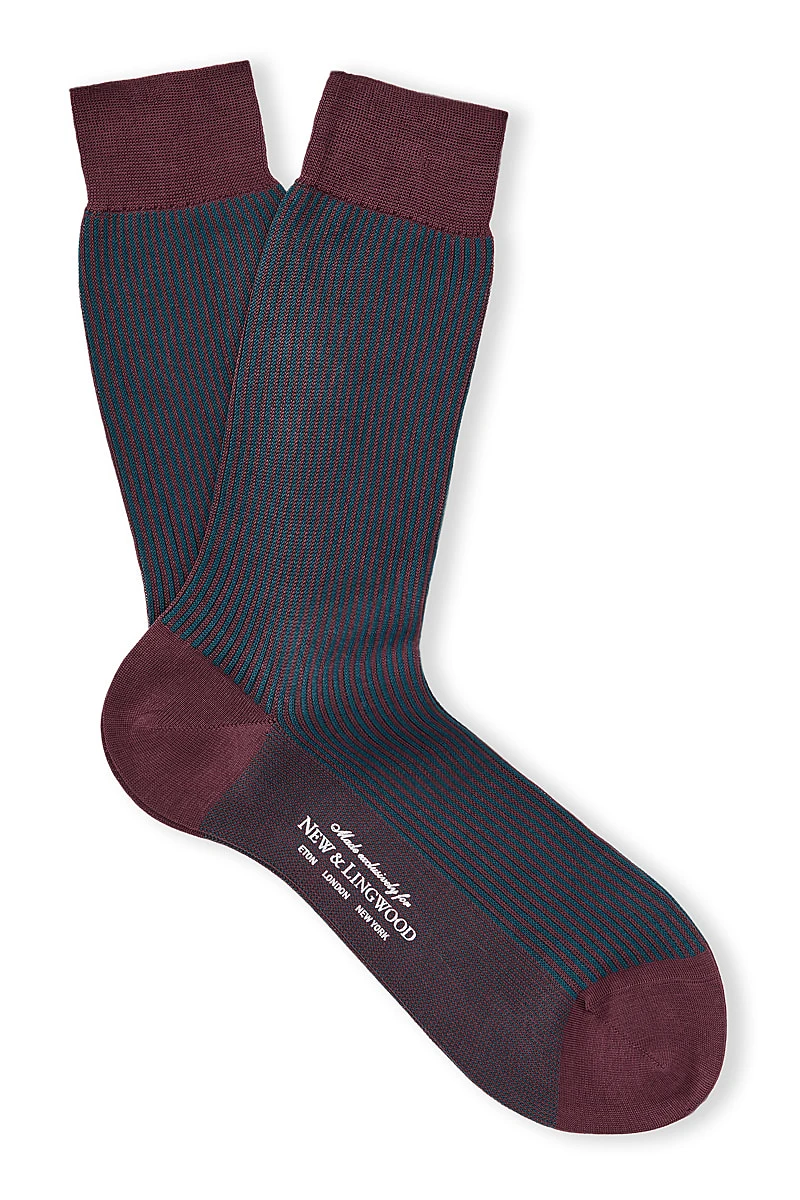Subtle two-tone stripes play through the vertical ribbing of these 100% cotton mid-calf socks.